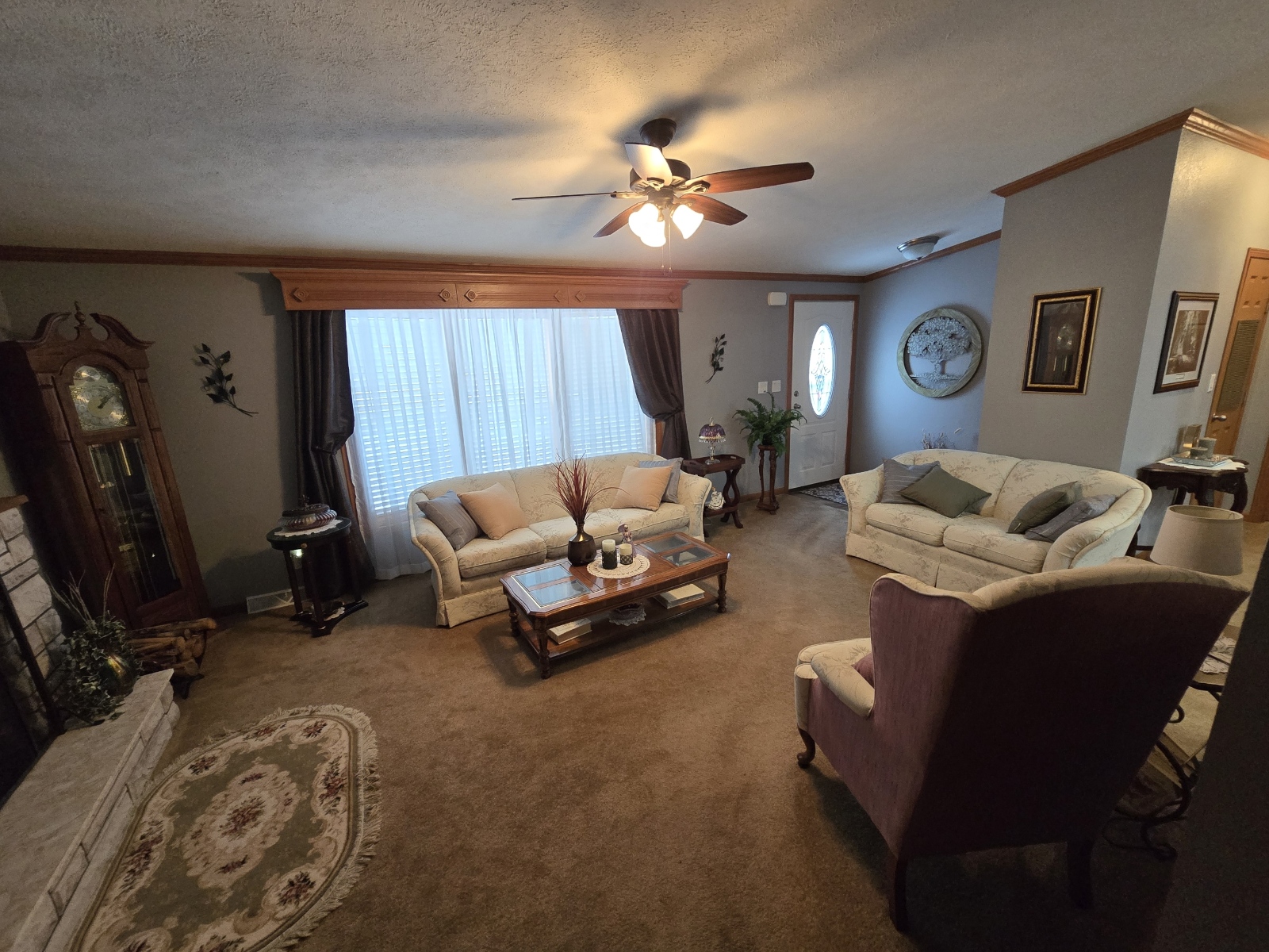 With cathedral ceilings, sheetrock walls, archways, recessed lighting, 6 panel doors, and lighted ceiling fans throughout, this rare 2014 28×48 2 bedroom 1.5 bathroom double wide home has just become available! The enormous eat in kitchen has a stove, refrigerator, microwave, dishwasher, pull down goose neck faucet, custom cabinet door and drawer handles, ceramic tile backsplash and bullnose, and pantry. There’s a separate formal dining area also with a built in buffet area with overhead cabinetry. A unique pillared archway separates the kitchen and large living room with a beautiful front door. The primary bedroom is spacious, has a walk in closet, and an attached bathroom with a tub / shower combination. The laundry room is also separate, has overhead cabinets, a water softener, and the washer and dryer are also included! It’s got central air, ceiling fans in every room, custom mirrors in the bathrooms, blinds, curtains, and the furniture is able to stay and be negotiated. Outside has a 2 car driveway, a sidewalk to the matching shed, and a composite deck. Welcome Home!