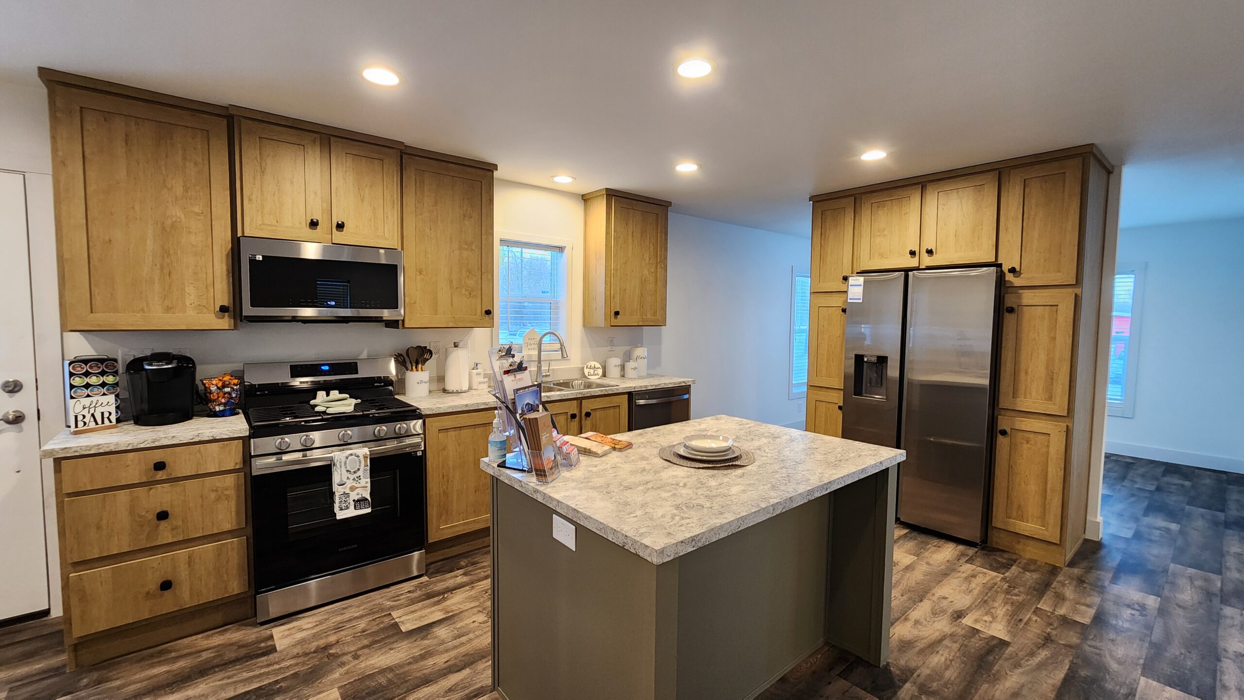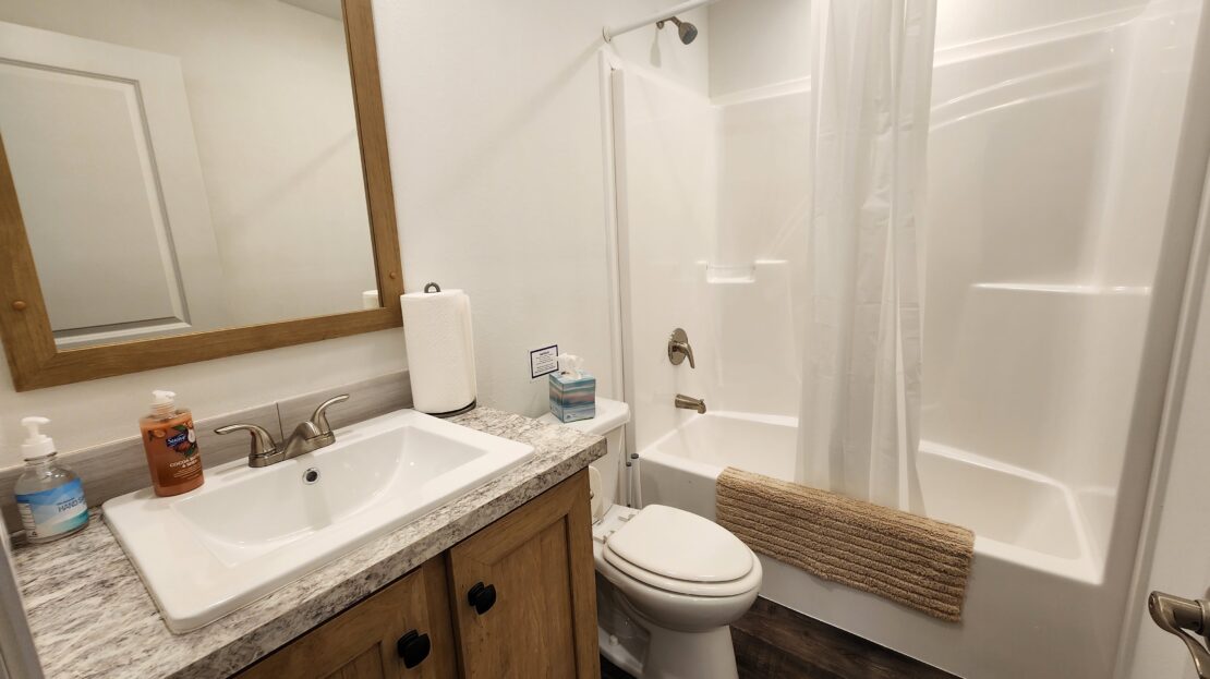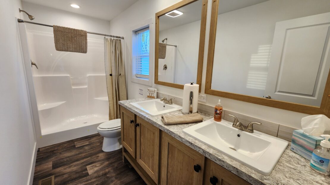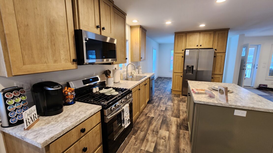 Brand New Model Home! With a covered front porch, 8′ flat ceilings, recessed lighting, and sheetrocked walls throughout, this 2025 Clayton homes Tempo Johnny B Goode eBuilt model home is one of the first most energy-efficient manufactured homes to be built. It has stunning stainless steel Samsung Smart appliances, duraCraft soft-close cabinets and drawers, a 40-gallon water heater, a high-efficiency gas furnace with an Ecobee smart thermostat, lighted ceiling fans, and durable blinds. The primary bedroom is spacious, has a large walk-in closet, and an attached bathroom with double sinks and a large dual-seat shower. The laundry room is separate, has overhead shelving, and the Samsung washer and dryer are also included! Outside has a large deck, a professionally built wooden shed, and a 2-car driveway! It’s literally amazing! *** Many other floorplans to choose from! ***