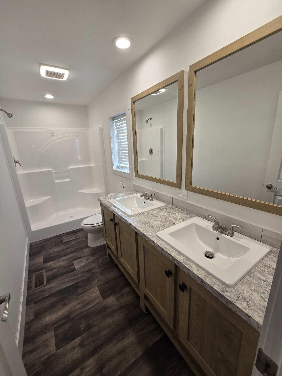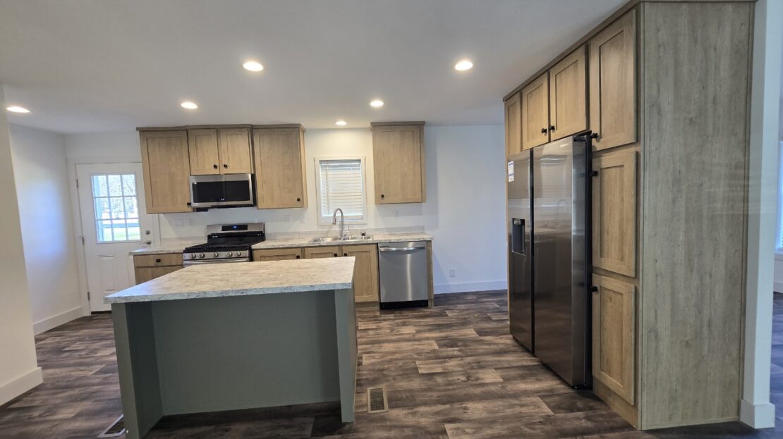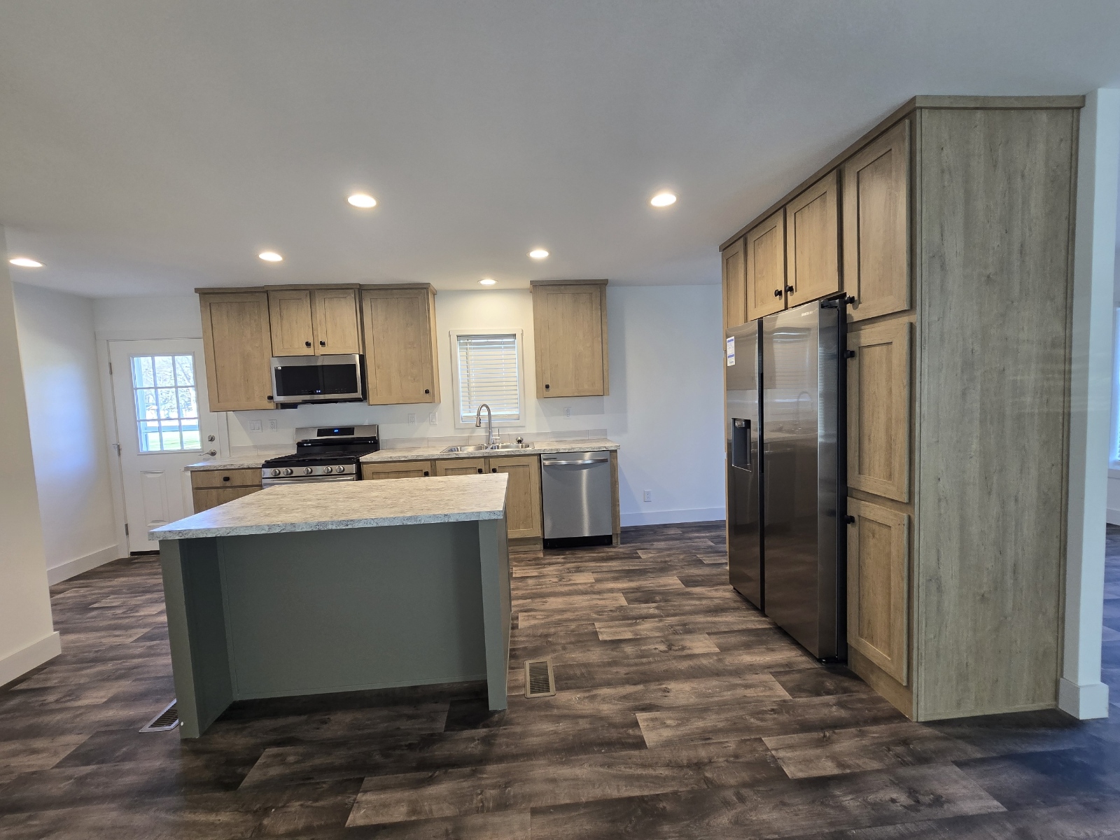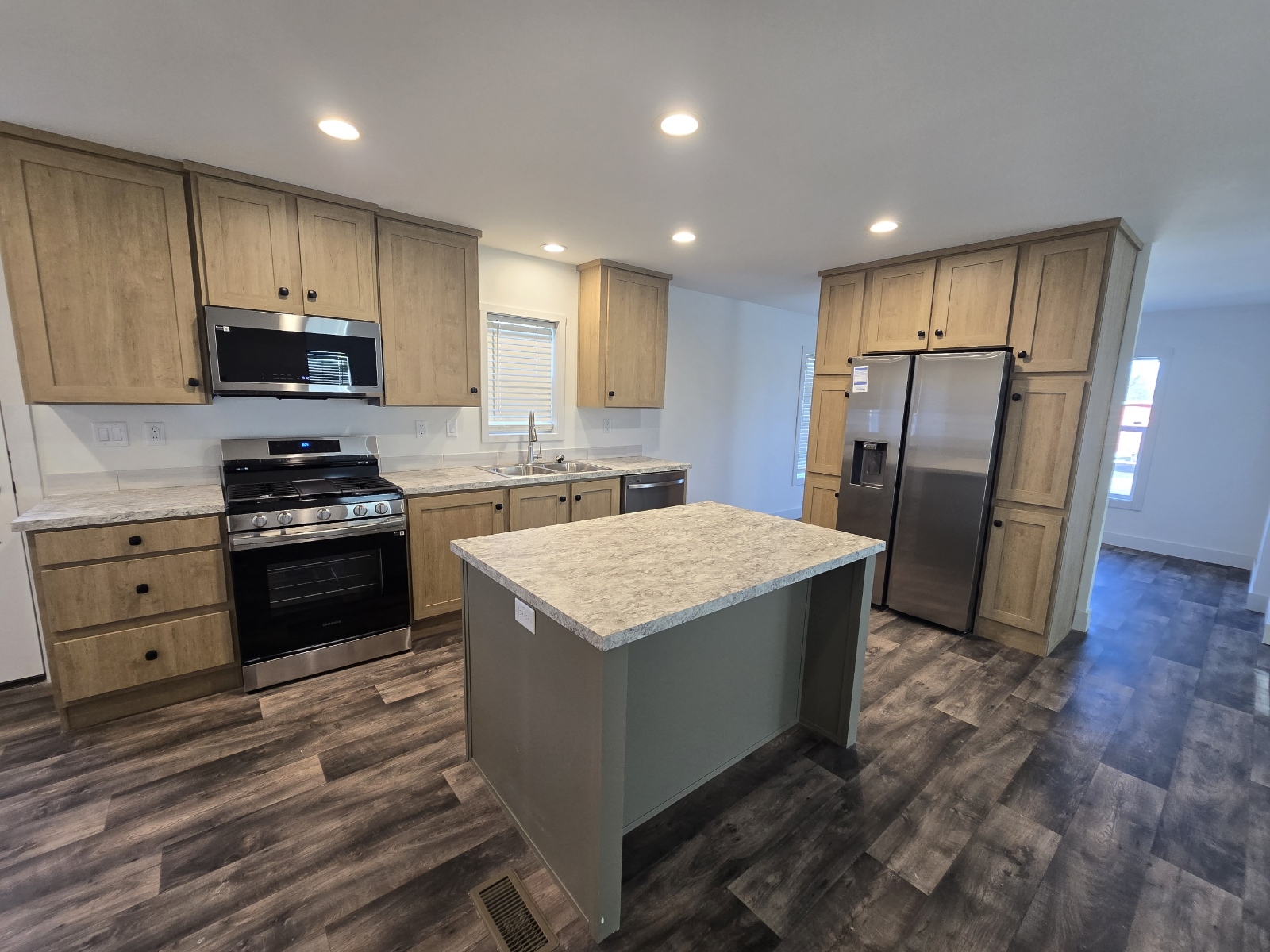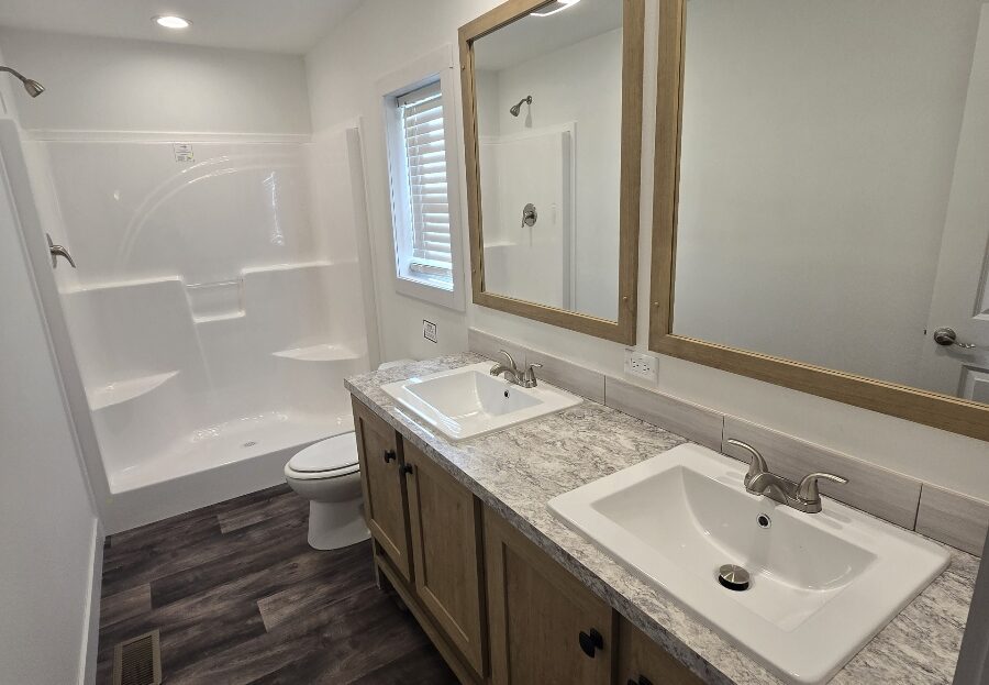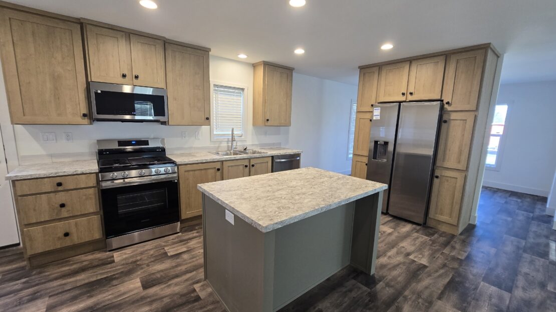 Brand New! Double-Wide Model! Home in Eastview Mobile Home Park! This eBuilt home has 8-foot flat ceilings throughout, DuraCraft soft-close cabinets, brand-new stainless steel Samsung Smart appliances, and elongated toilets. This home comes with a 40 Gallon Hybrid Water Heater with a Heat Pump, a High-Efficiency Gas Furnace with an Ecobee smart thermostat, and a brand-new shed. A covered deck and steps are also included with a beautiful porch.