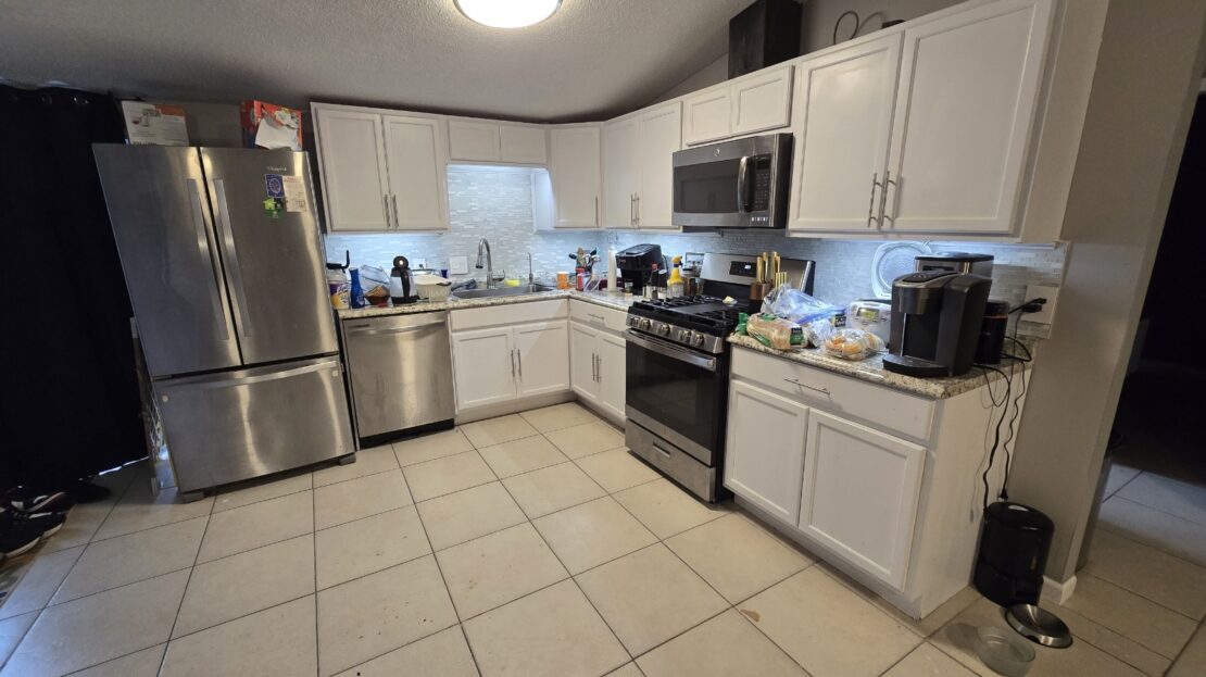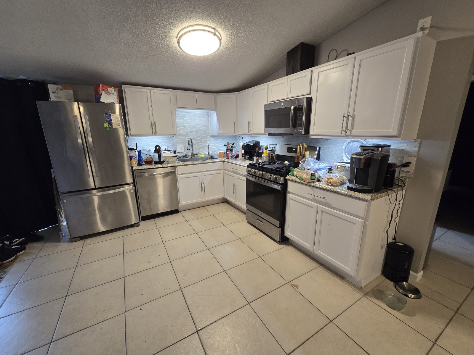 Beautiful updated home nestled on a fabulous corner lot with huge yard and amazing two-tiered deck! Venture into the charming creatively-updated modern kitchen with new white cabinets, backsplash, stainless steel appliances including a new stove, kitchen island, under sink water purifier, and contemporary dining room lighting! Take advantage of the spacious primary bedroom and bathroom along with two more big bedrooms and second full bathroom! The laundry room is separate and the new washing machine and the dryer are also included. There’s new maintenance free tile flooring throughout the kitchen and living room, LED lighting throughout, and a newly remodeled bathroom! All plumbing has been completely replaced along with a newer sliding glass door, and furnace.