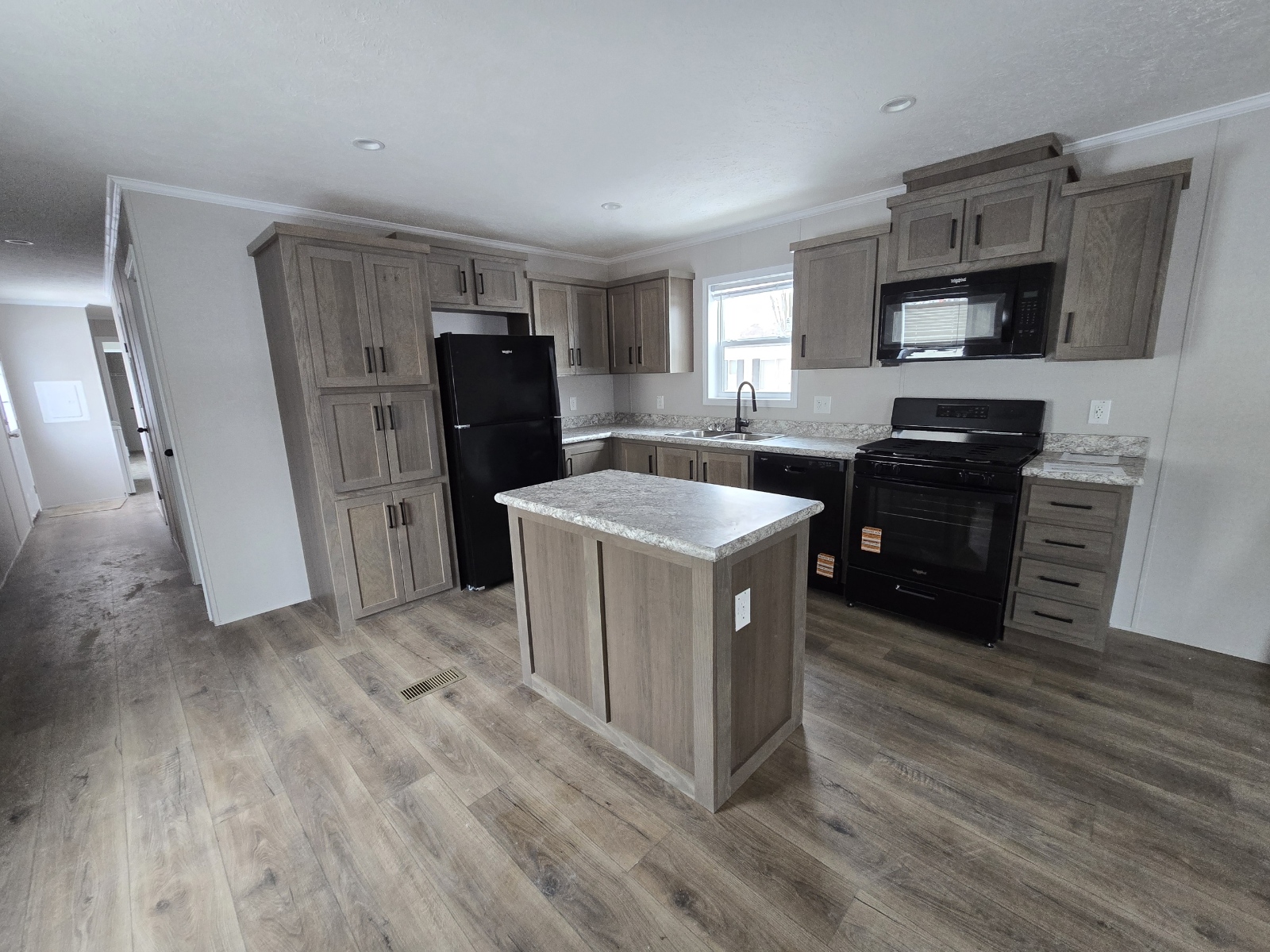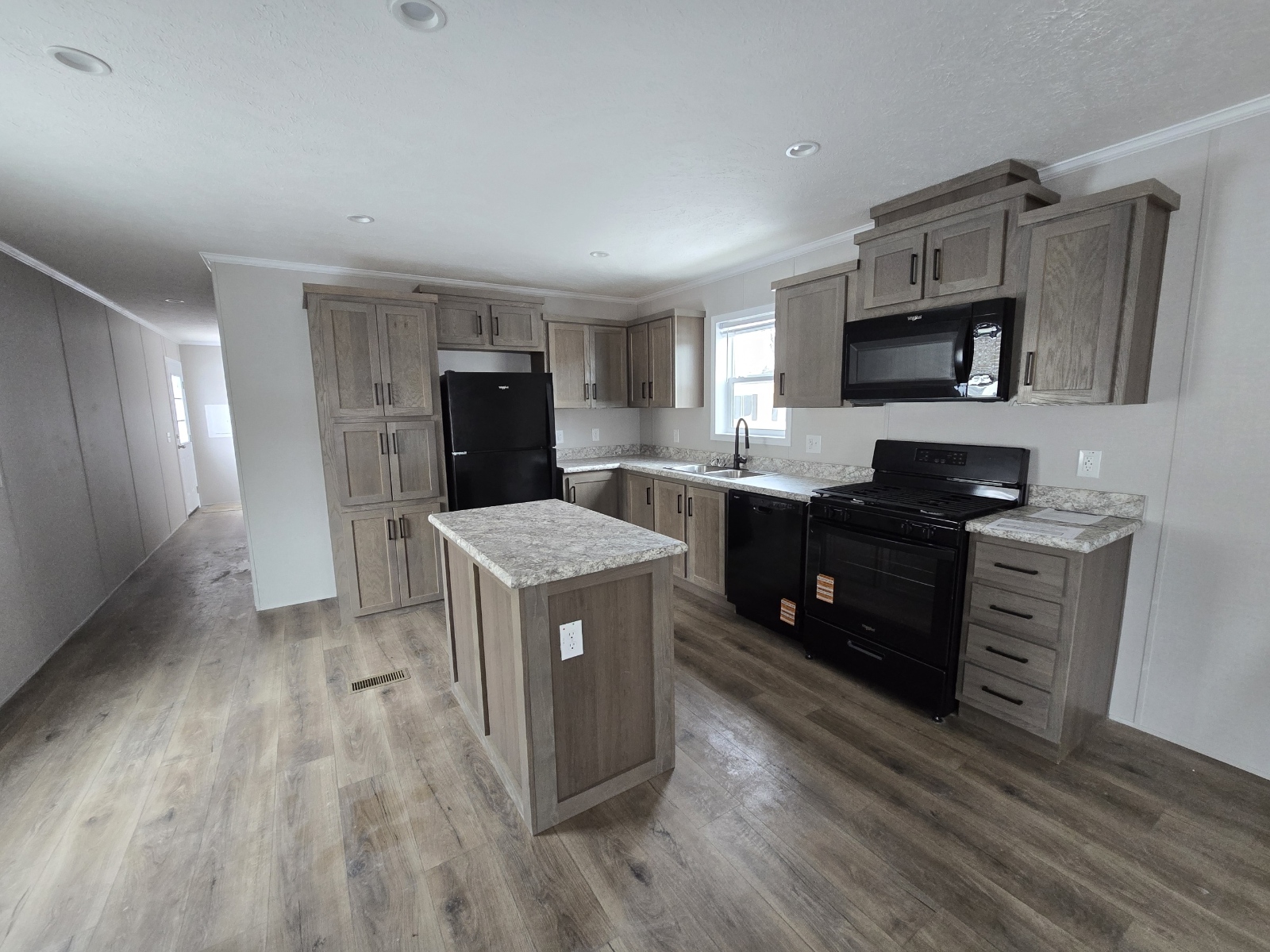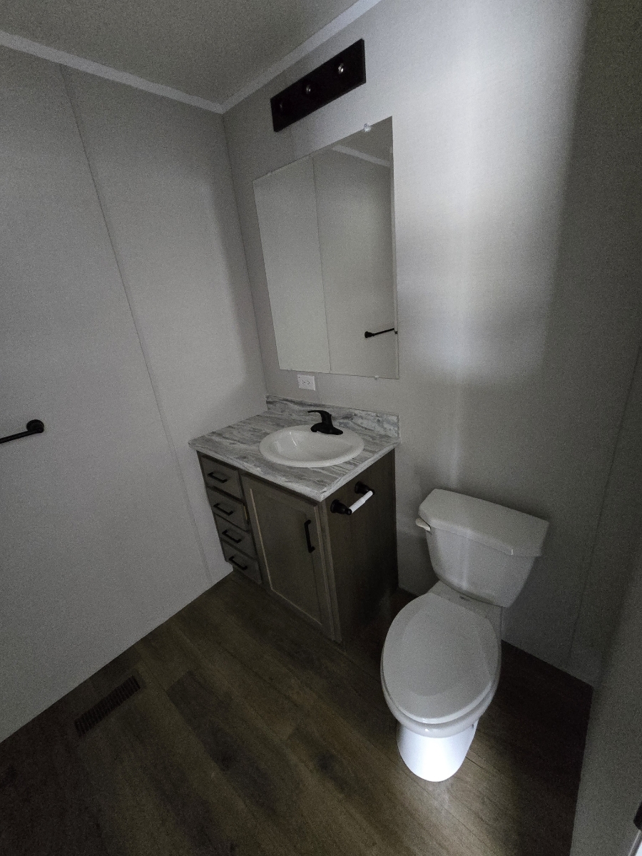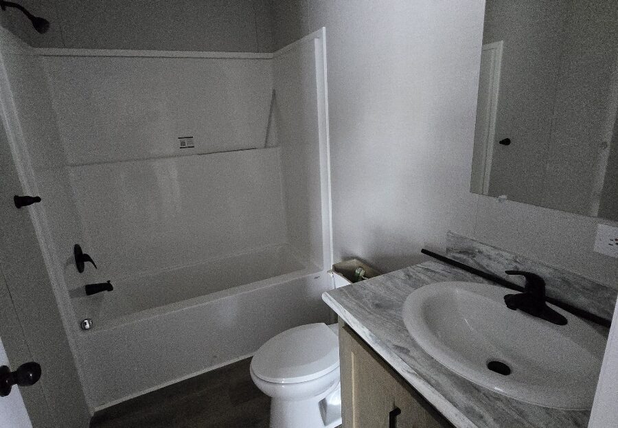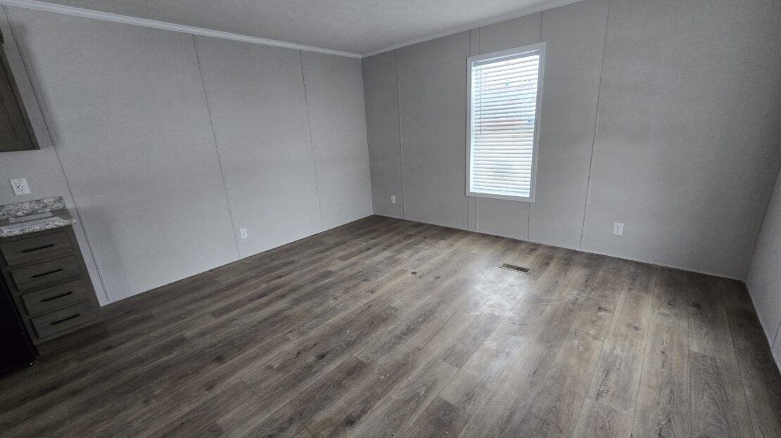 With tall flat ceilings, blinds, and central air, this 2026 16×66 3 bedroom 2 bathroom Champion manufactured home is now available! The kitchen is beautiful with a stove, refrigerator, dishwasher, microwave, tall gooseneck pull down faucet, double door pantry, window over the sink, recessed lighting, and a large island with storage. The primary bedroom is spacious, has a walk in closet, and an attached bathroom. The laundry area is separate, has an overhead shelf, and the washer and dryer are also included! Outside has durable wood steps and a 2 car driveway! Pets are allowed also! Move right in!