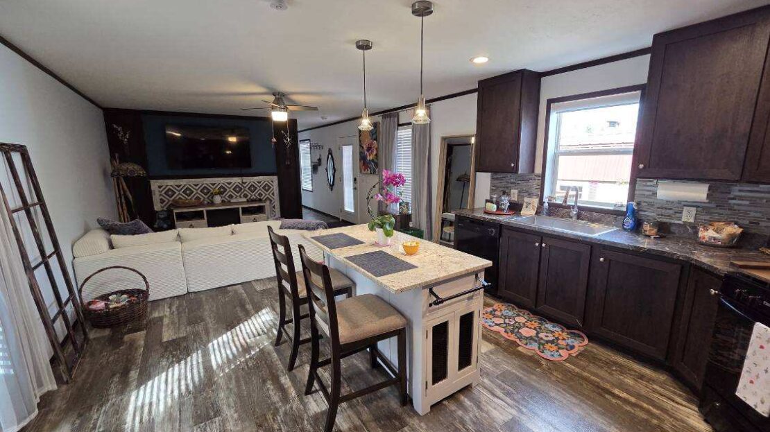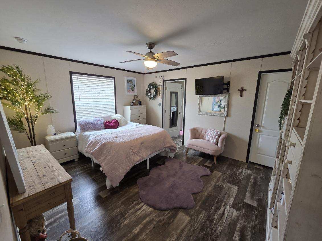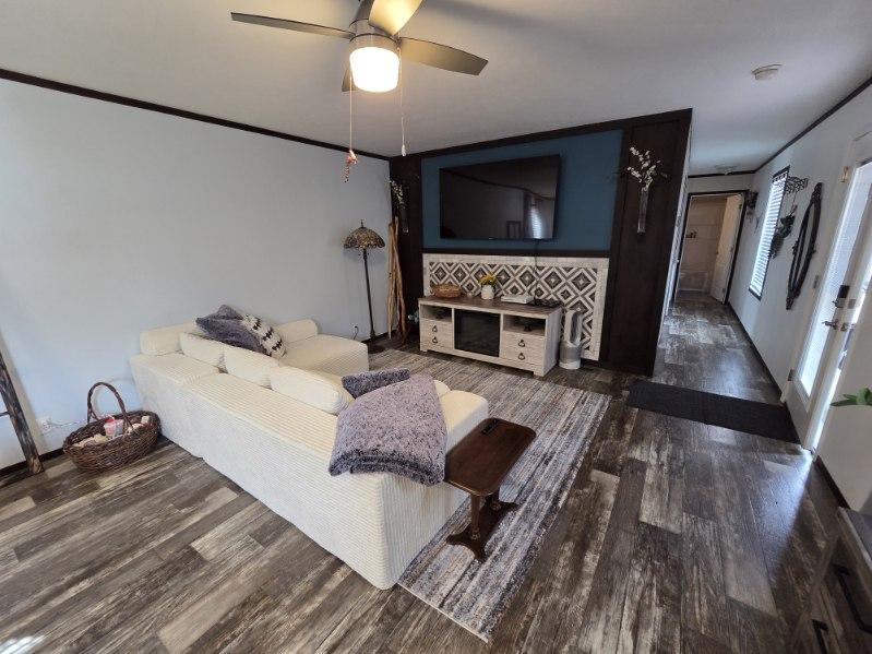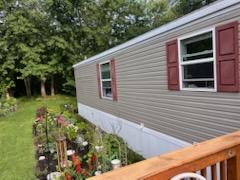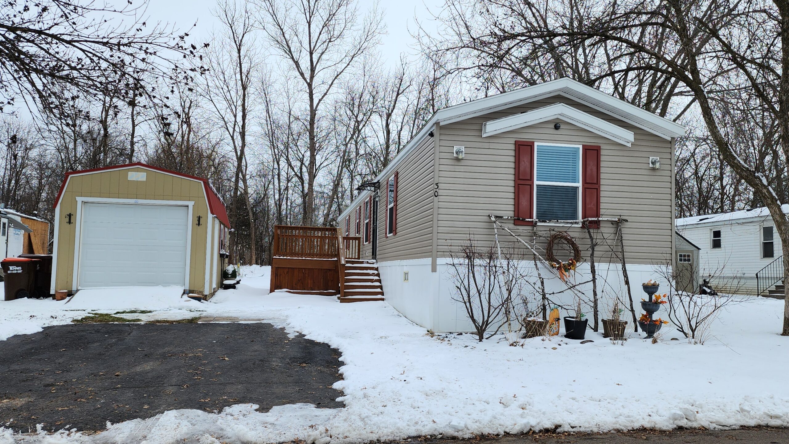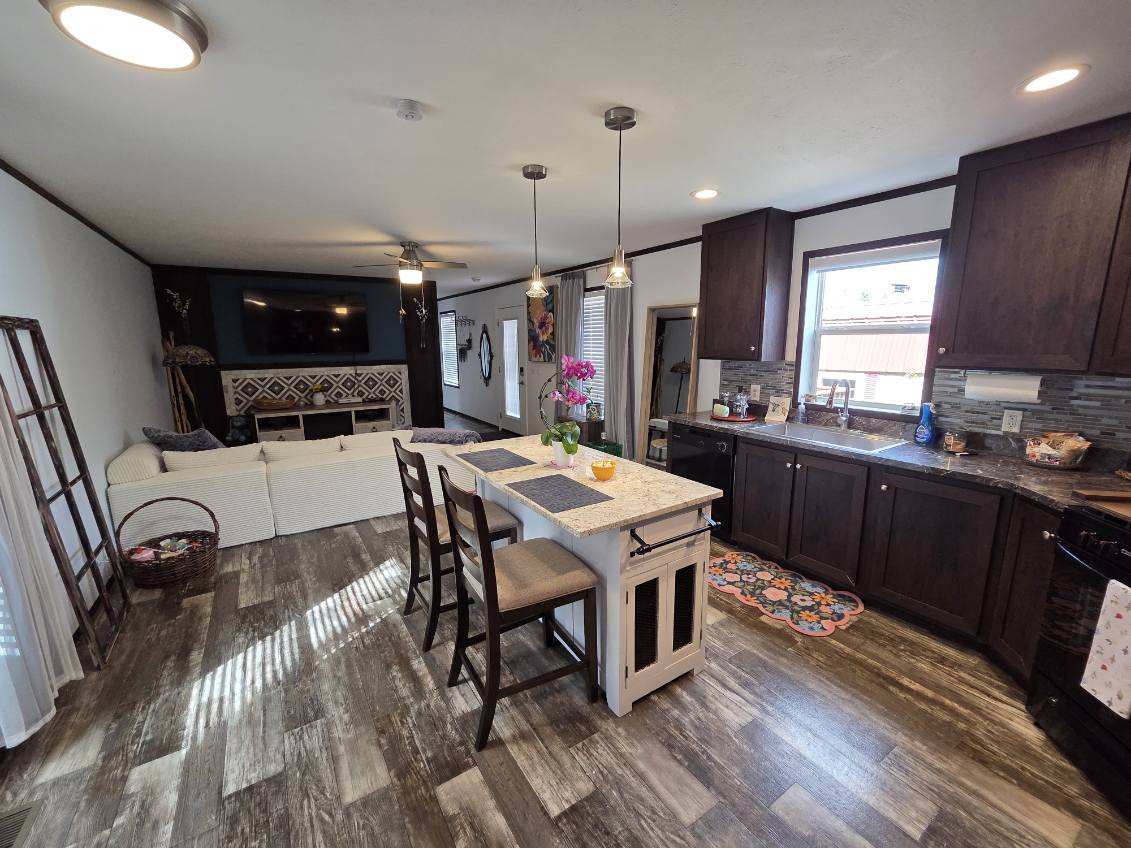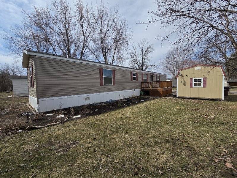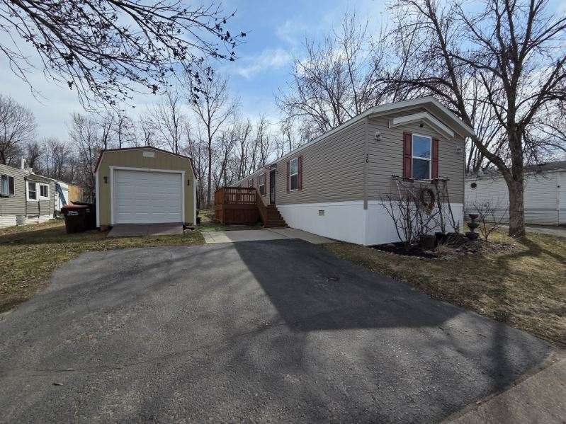 With a large private back yard, this stunning 2020 16×76 Clayton manufactured home offers 3 bedrooms, 2 bathrooms and is fully move-in ready with numerous upgrades throughout. The open-concept living area flows into a modern kitchen featuring upgraded countertops, a new custom granite island, new deep sink with garbage disposal just added, tile backsplash, and a full appliance package including a stove, refrigerator, dishwasher, and brand-new microwave. The living room has a lighted ceiling fan and a tiled accent wall that comes with an installed TV with no show wiring and the fireplace will stay as a housewarming gift! A separate laundry room includes a Samsung washer and dryer for added convenience. The primary suite includes built-in shelving, a large walk-in closet, and a spacious bathroom with double sinks with new faucets and tile backsplash, a walk-in shower, new toilet, and a linen closet. The guest bathroom has been completely remodeled with modern finishes. Additional features include sheetrock walls, fresh paint, and white panel doors throughout, central air, new Faux wood blinds, curtains, dimmable lighting, and a lighted ceiling fan. Exterior highlights include a large $10,000 Amish built barn shaped garage, two-car resurfaced driveway, enormous deck with ramp, insulated vinyl skirting, and a beautiful glass front door with built-in blinds, a screen door, and even an extra storage shed. This home has been meticulously maintained and is surrounded by concrete patio’s in both front and back, plush floral garden, vegetable garden, crabapple tree, arborvites, lights in the trees, and a walking path to the nature preserve behind! Pets are welcome also!