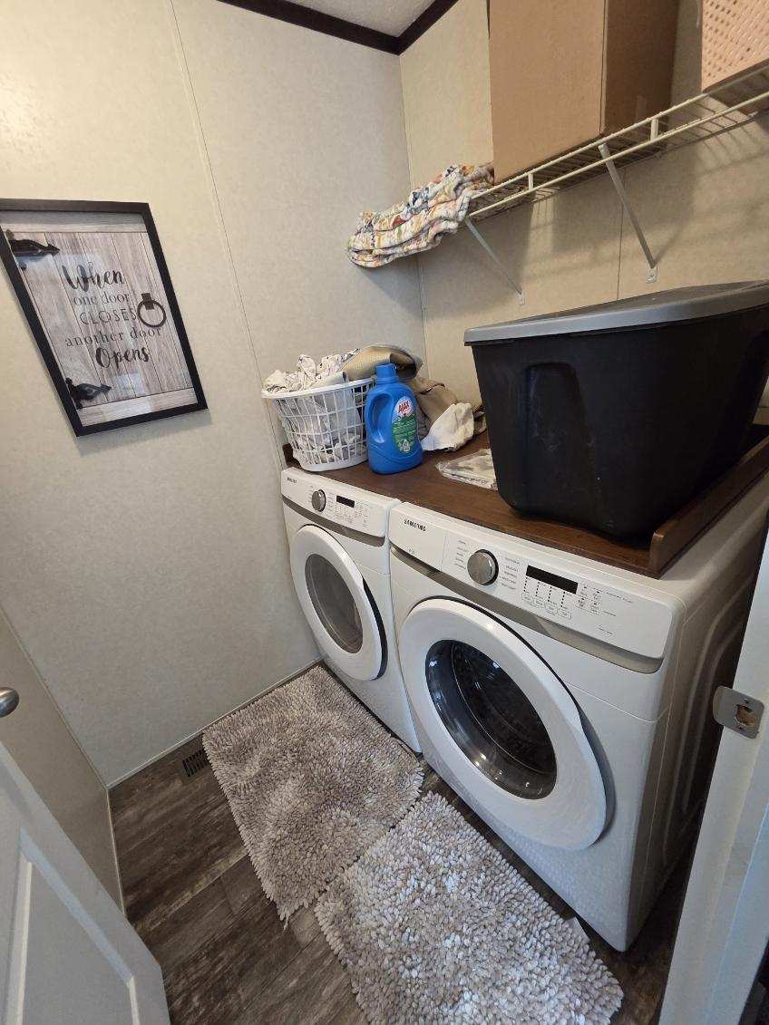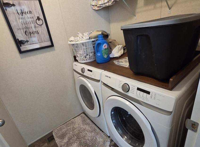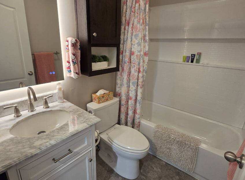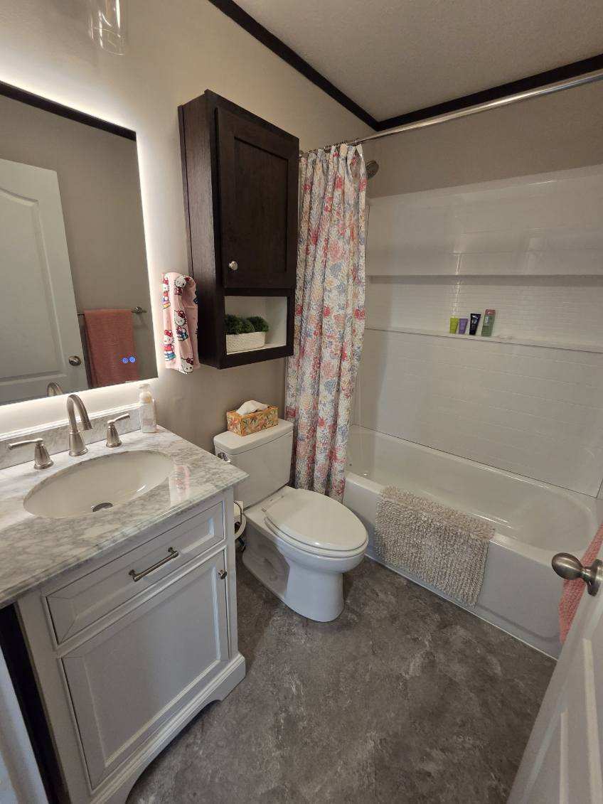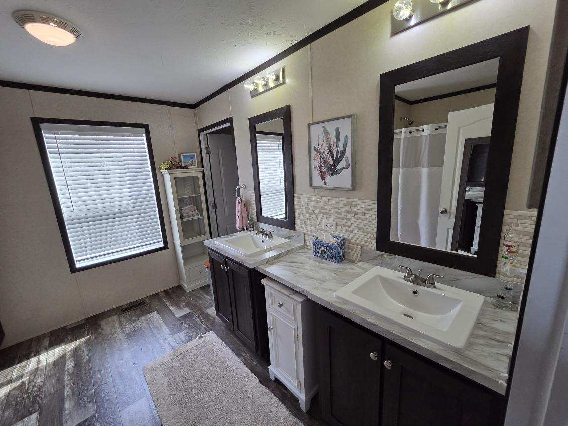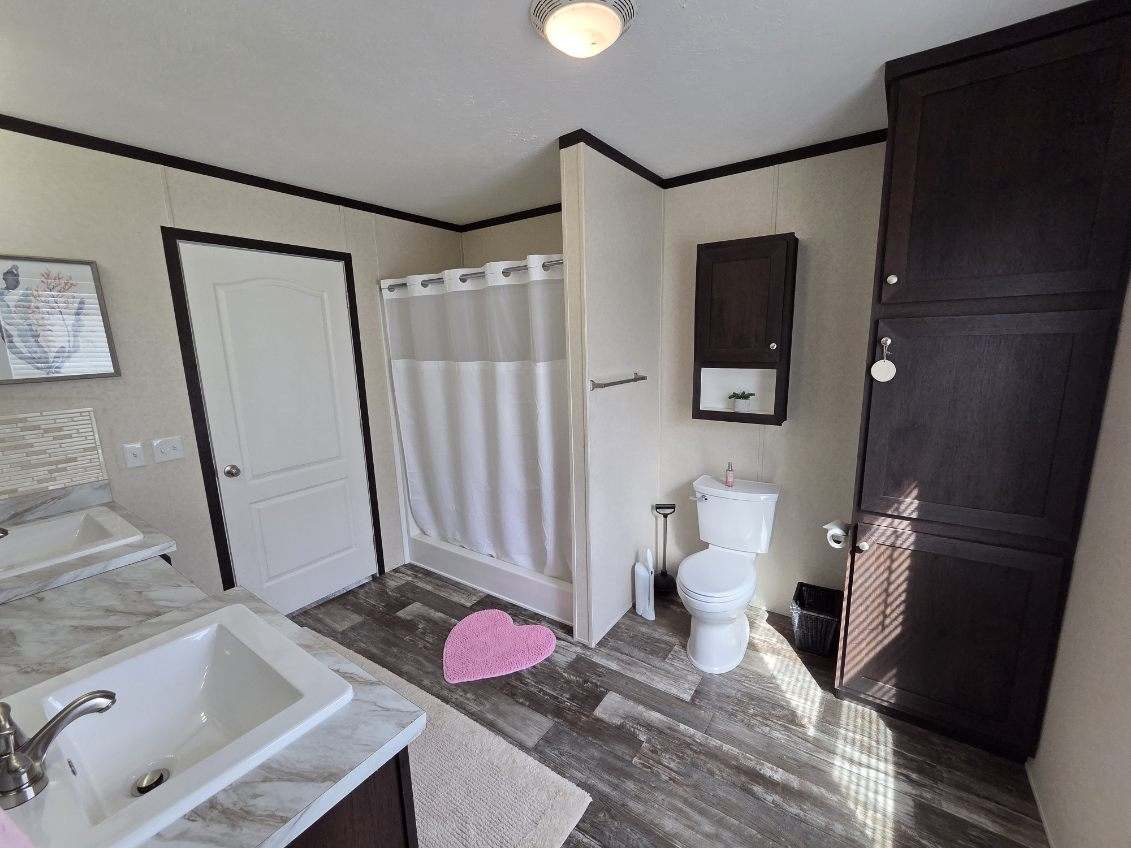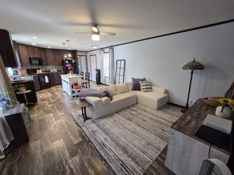 With a large private back yard, this stunning 2020 16×76 Clayton manufactured home offers 3 bedrooms, 2 bathrooms and is fully move-in ready with numerous upgrades throughout. The open-concept living area flows into a modern kitchen featuring upgraded countertops, a new custom granite island, new deep sink with garbage disposal just added, tile backsplash, and a full appliance package including a stove, refrigerator, dishwasher, and brand-new microwave. The living room has a lighted ceiling fan and a tiled accent wall that comes with an installed TV with no show wiring and the fireplace will stay as a housewarming gift! A separate laundry room includes a Samsung washer and dryer for added convenience. The primary suite includes built-in shelving, a large walk-in closet, and a spacious bathroom with double sinks with new faucets and tile backsplash, a walk-in shower, new toilet, and a linen closet. The guest bathroom has been completely remodeled with modern finishes. Additional features include sheetrock walls, fresh paint, and white panel doors throughout, central air, new Faux wood blinds, curtains, dimmable lighting, and a lighted ceiling fan. Exterior highlights include a large $10,000 Amish built barn shaped garage, two-car resurfaced driveway, enormous deck with ramp, insulated vinyl skirting, and a beautiful glass front door with built-in blinds, a screen door, and even an extra storage shed. This home has been meticulously maintained and is surrounded by concrete patio’s in both front and back, plush floral garden, vegetable garden, crabapple tree, arborvites, lights in the trees, and a walking path to the nature preserve behind! Pets are welcome also!