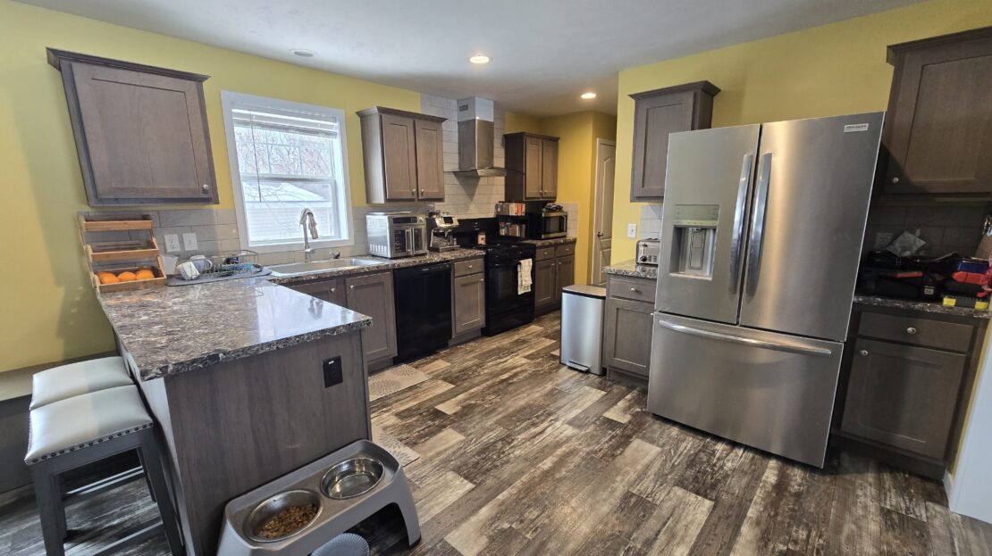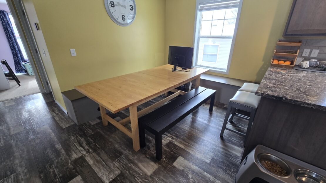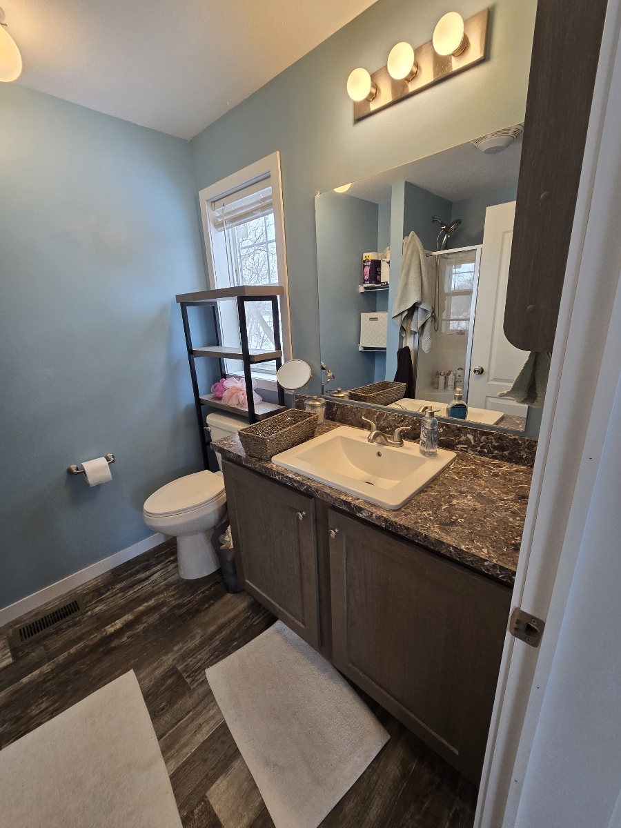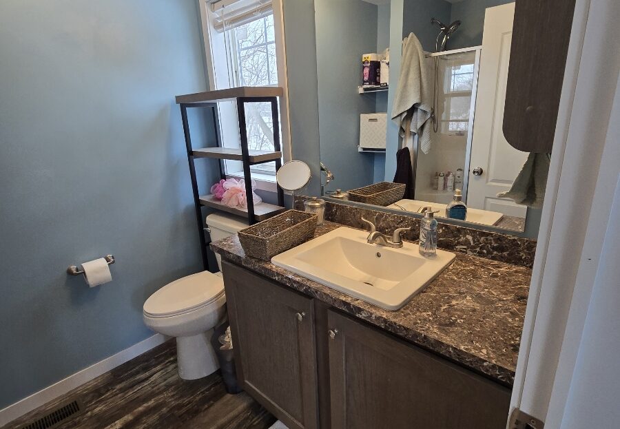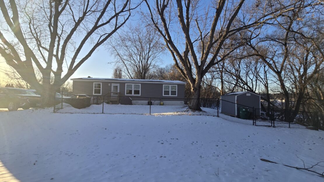 With tall flat ceilings, white paneled doors, crossbar windows, and recently painted sheetrock walls throughout, this 2020 28×52 3 bedroom 2 bathroom Schult manufactured home is stunning! The kitchen has a stove with a stainless steel vent hood, stainless steel side by side refrigerator with water and ice in the door, dishwasher, microwave, breakfast bar, a tall gooseneck pull down faucet, walk in pantry, and a window over the sink. There’s even a separate dining room and the table can stay as a housewarming gift! The primary bedroom is spacious, has a walk in closet, and an attached bathroom with a large walk in shower with a hand held shower head. There’s also a huge separate laundry room with double wall to wall overhead shelving, enough room for a freezer, and the washer and dryer are also staying! There’s a built in bench with storage, blinds, central air, wood look vinyl flooring, and the white bunk bed with built in storage system in the second bedroom can also stay! Outside has trees, an 8×8 matching shed, fenced yard, and a rare 2+ car driveway! Pets are welcome also!