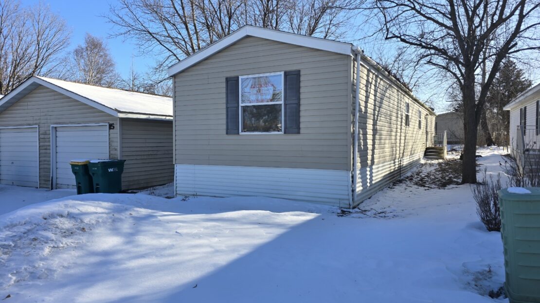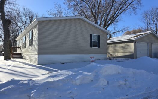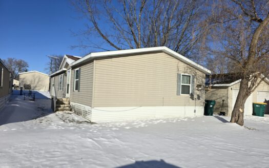 With cathedral ceilings, this 2003 16×76 2 bedroom 2 bathroom Marshfield manufactured home is filled with natural light, has a huge open eat in kitchen with a refrigerator, stove and dishwasher that could use replacing, a window over the sink, and even a built in desk. The living room is also large, has a coat closet, and a ceiling fan. The primary bedroom is large, has a huge wall to wall closet and an attached bathroom with a soaker bathtub and separate walk in shower. The laundry room is separate and the washer and dryer are included. There are two built in desks, blinds, a water softener, central air, a large linen closet, and both bedrooms have a private entrance to the bathrooms! Outside has a 2 car driveway and even a garage! Pets are welcome too.