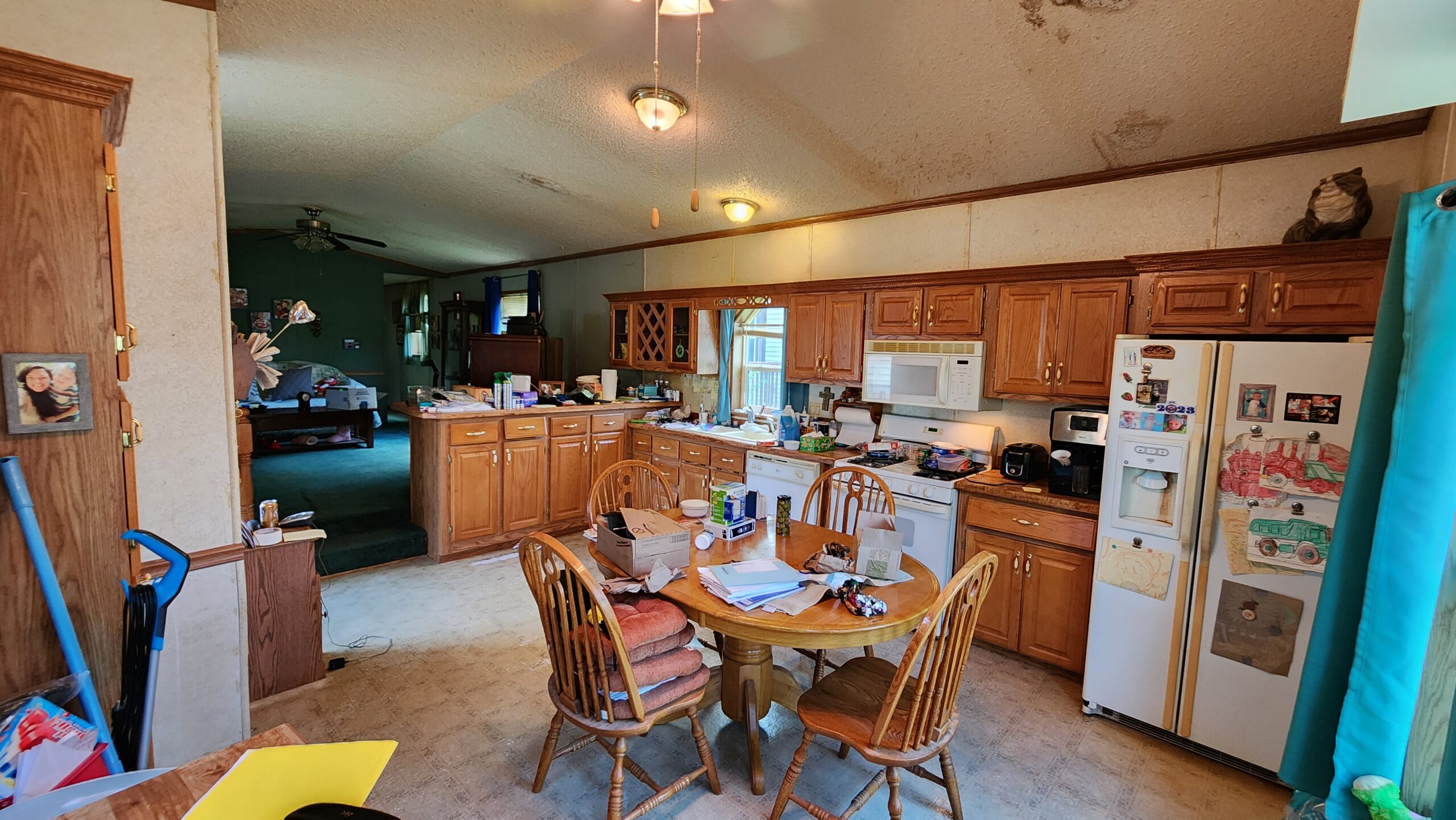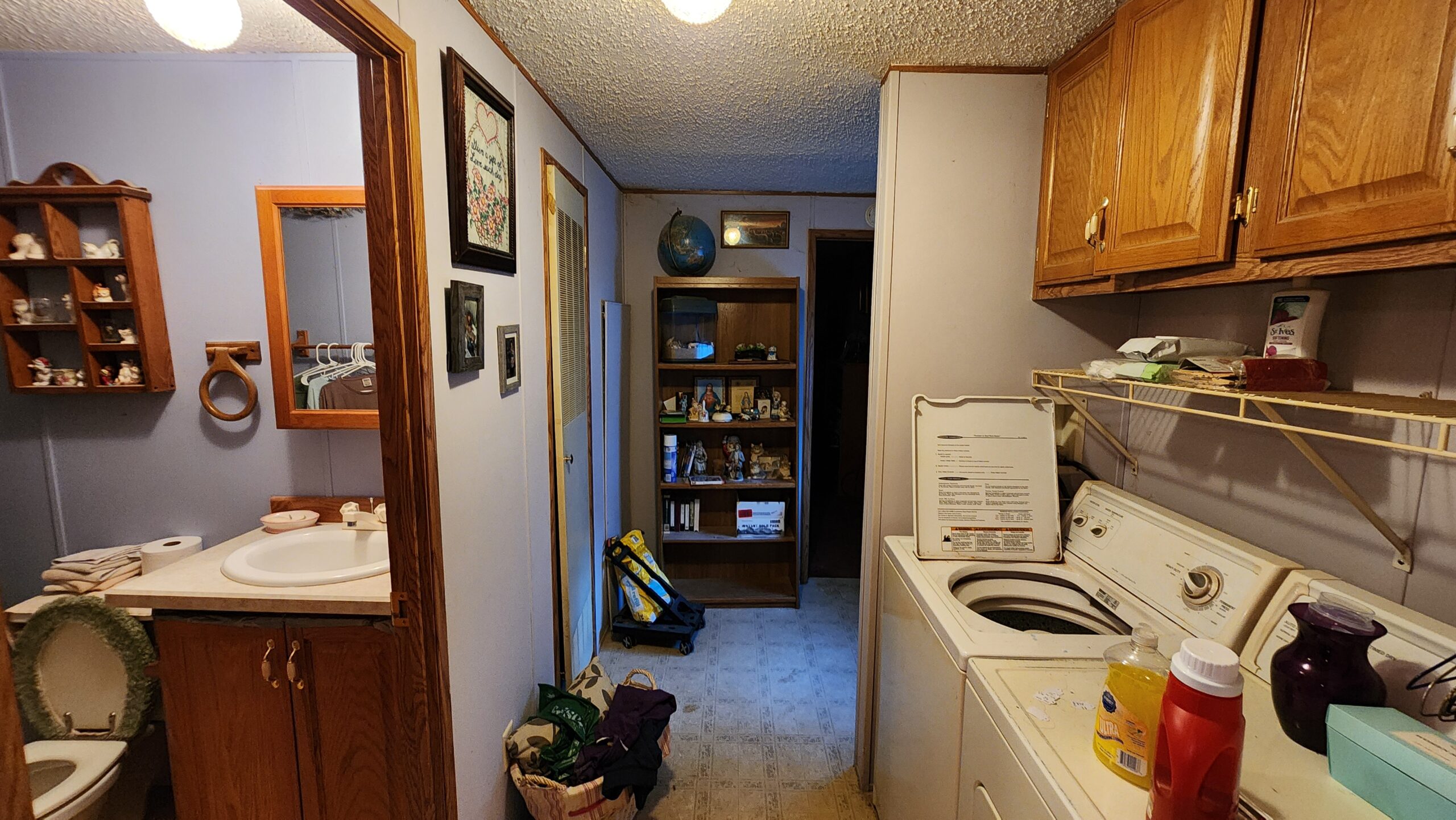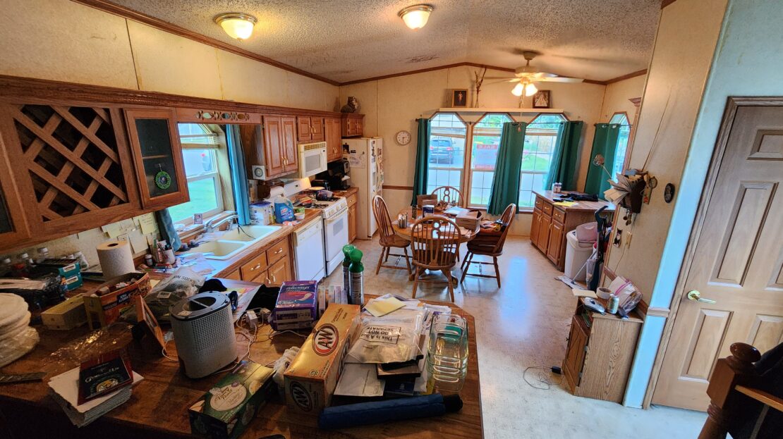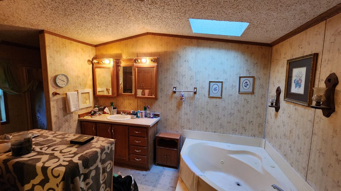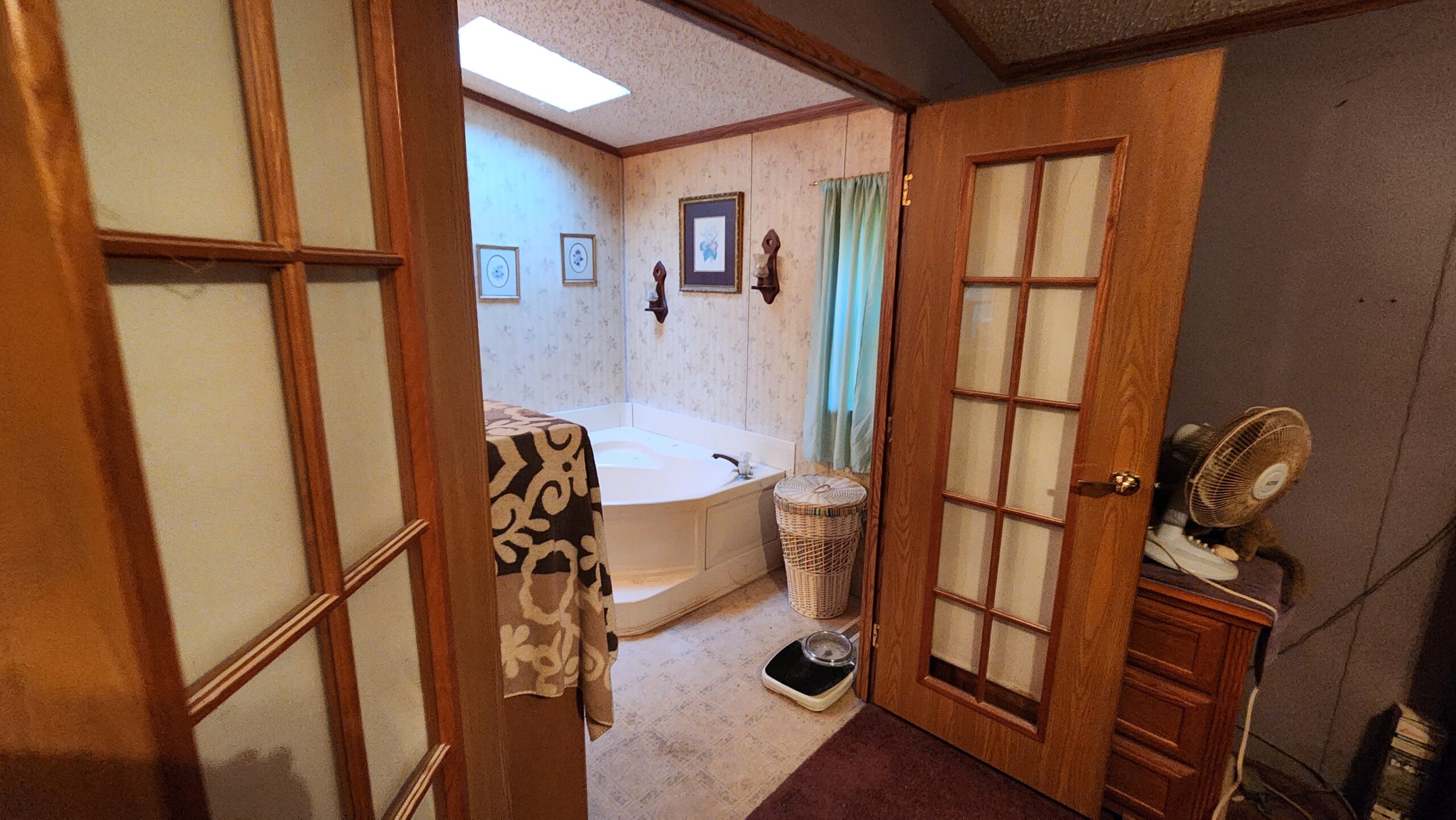The first one to contact us will be able to move right into this 2002 16×76 2 bedroom 2 bathroom Friendship Northern Classic absolutely loaded with a large front eat in kitchen with a stove, side by side refrigerator, dishwasher, microwave, pantry, moveable kitchen island, deep double sink, and even a built in wine rack, and loaded with windows! Step up to the large living room with a cathedral ceiling, a lighted ceiling fan and coat closet. The primary suite is ENORMOUS with a large walk in closet, lighted ceiling fan, and French doors leading to a huge bathroom with a corner whirlpool bathtub, dual medicine cabinets, a linen cabinet, a walk in shower, and enough extra room for the large dresser that’s in the pictures! There are also French doors leading to the second bedroom. The laundry room is separate, has overhead shelving and cabinetry, and the washer and dryer are also included. It’s loaded with skylights, 6 panel doors, built ins galore, central air, a newer water heater, water softener, and blinds and curtains! The seller has home service plus, so it has been very well taken care of. The outside lot is great with no neighbors behind making the patio area very private. There’s also a 2 car driveway AND a garage! They are looking for a quick sale, which shows in the pricing. The pictures are a little bit rough, but whatever you want can stay in the home also if you would like, otherwise, it will be removed.  Pets are welcome too!