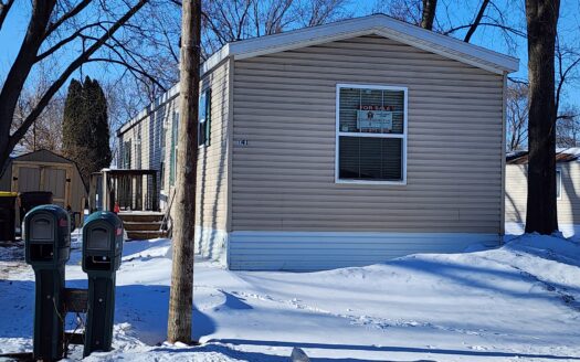 On a large treed landscaped lot, with sheetrock walls, recessed lighting, blinds, and new flooring throughout, this 1976 24×56 4 bedroom 2 bathroom Modulin